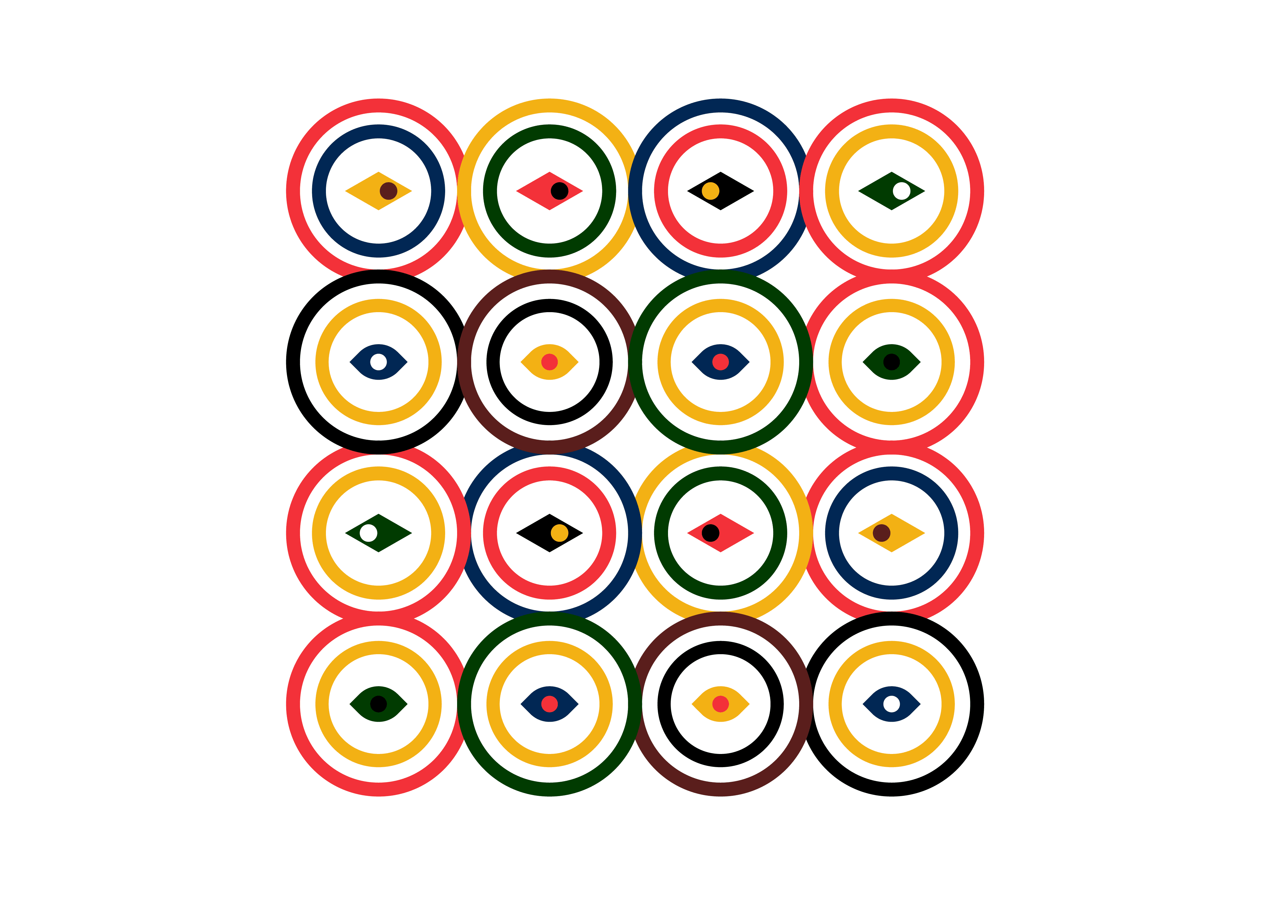 Concept Each eye represents a different lens through which we see and are seen, a metaphor for identity, awareness, and cultural presence. The repeating layout speaks to structure and collective experience, while subtle variations in form and color hint at individuality. Designed to be visually engaging and emotionally suggestive, the piece balances abstraction with storytelling.